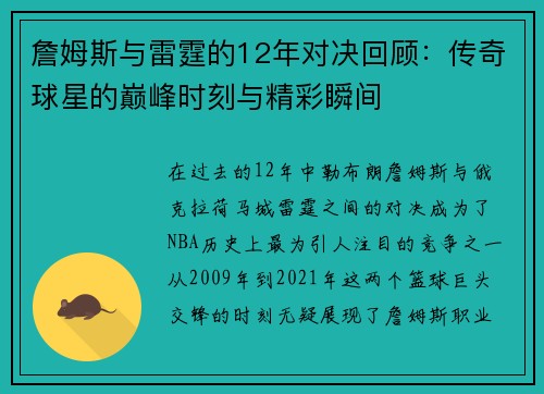 在这场备受瞩目的湖人与掘金的对决中,两队展现了高水平的竞技状态和战术安排。比赛过程跌宕起伏,精彩瞬间频现,让观众大呼过瘾。通过回放,我们可以清晰地看到双方球员在攻防两端的表现,以及教练的临场指挥如何影响比赛走势。在赛后分析中,我们将从球队阵容、战术执行、关键时刻表现和未来展望四个方面进行深入探讨,力求全面呈现这场精彩对决的真相与意义。 1、球队阵容分析 湖人队此次出战时,核心球员詹姆斯依旧扮演着...